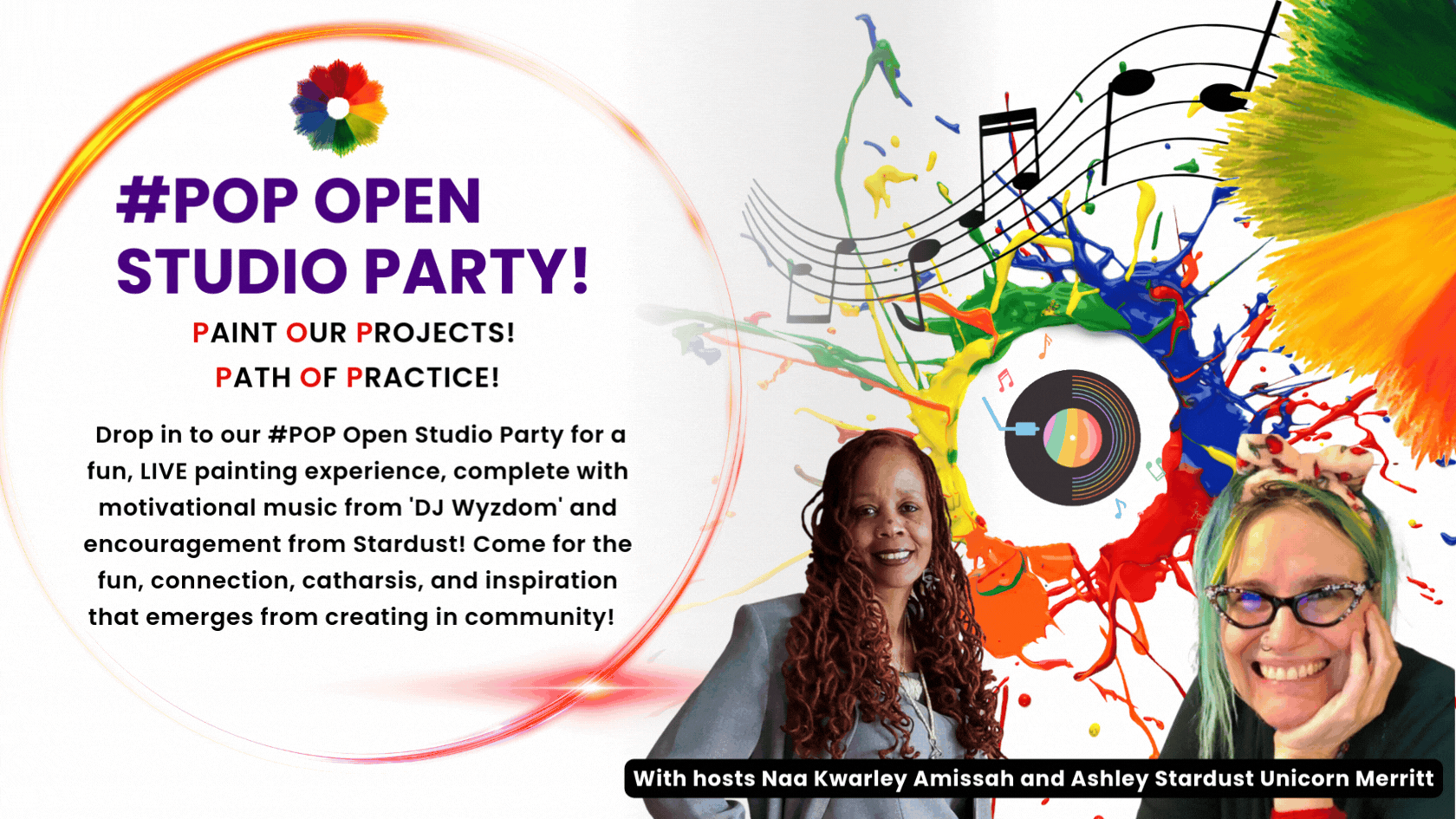 Attend our #POP (Paint Our Projects) Open Studio Parties where you can paint and dance LIVE with our community online for motivation and inspiration!